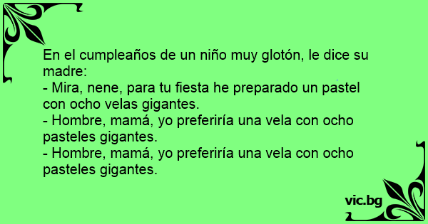 En el cumpleaños de un niño muy glotón, le dice su madre:
