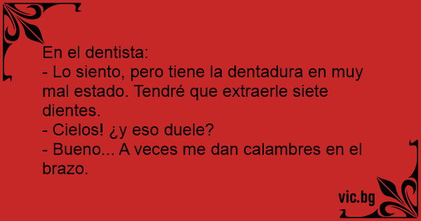 - Lo siento, pero tiene la dentadura en muy mal estado. Tendré que extraerle siete dientes.