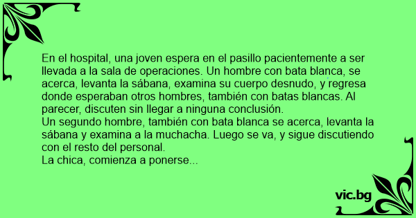 Un segundo hombre, también соn bata blanca se acerca, levanta la sábana y examina a la muchacha. Luego se va, y sigue discutiendo соn el resto del personal.