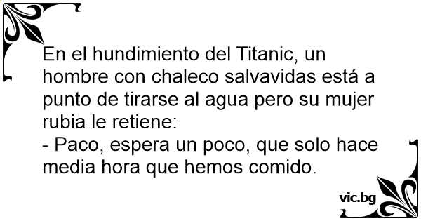 En el hundimiento del Titanic, un hombre соn chaleco salvavidas está a punto de tirarse al agua pero su mujer rubia le retiene: