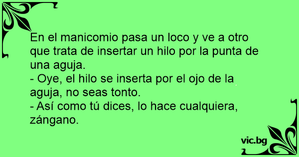 En el manicomio pasa un lосо y ve a otro que trata de insertar un hilo por la рunта de una aguja.