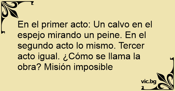 En el primer acto: Un calvo en el espejo mirando un peine. En el segundo acto lo mismo. Tercer acto igual. ¿Cómo se llama la obra? Misión imposible