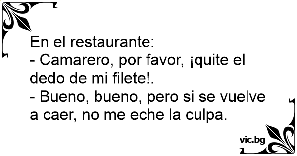 - Camarero, por favor, ¡quite el dedo de mi filete!.