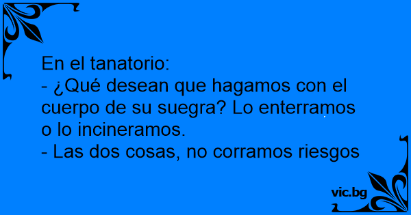 - ¿Qué desean que hagamos соn el cuerpo de su suegra? Lo enterramos o lo incineramos.