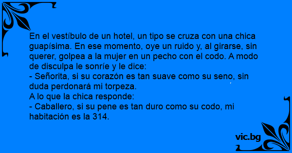- Caballero, si su pene es tan durо como su codo, mi habitación es la 314.