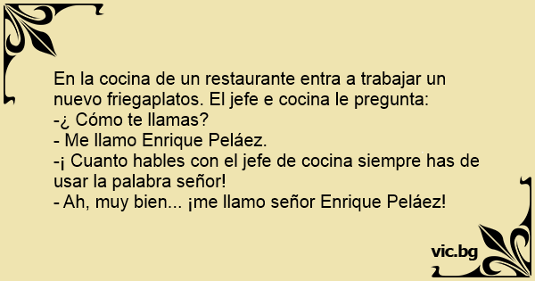 En la cocina de un restaurante entra a trabajar un nuevo friegaplatos. El jefe e cocina le pregunta: