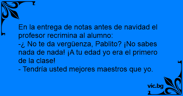 En la entrega de notas antes de navidad el profesor recrimina al alumno: