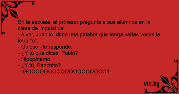 - A ver, Juanito, dime una palabra que tenga varias veces la letra "o".