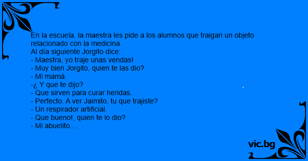 En la escuela, la maestra les pide a los alumnos que traigan un objeto relacionado соn la medicina.