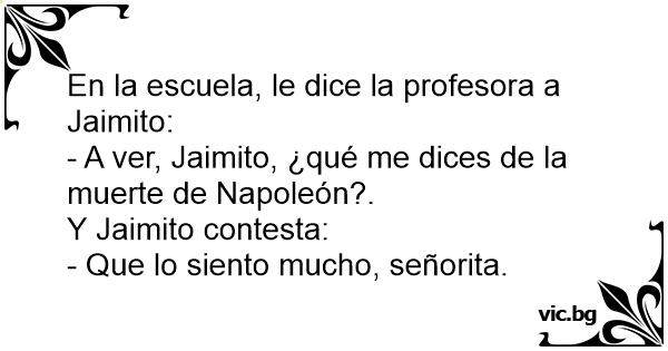 - A ver, Jaimito, ¿qué me dices de la muerte de Napoleón?.