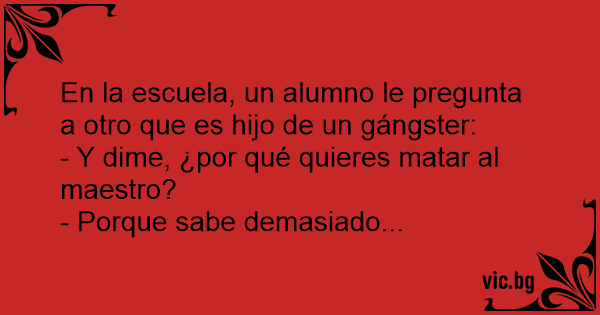 En la escuela, un alumno le pregunta a otro que es hijo de un gángster: