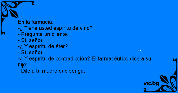 -¿ Y espíritu de contradicción? El farmacéutico dice a su hijo:
