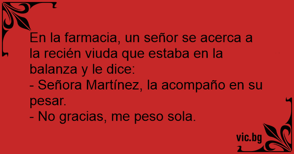 En la farmacia, un señor se acerca a la recién viuda que estaba en la balanza y le dice: