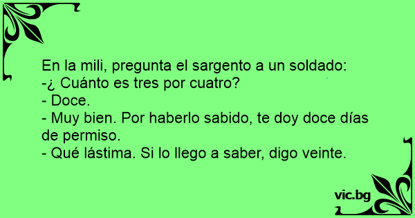 - Muy bien. Por haberlo sabido, te doy doce días de permiso.