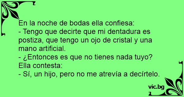 - Tengo que decirte que mi dentadura es postiza, que tengo un ojo de cristal y una mano artificial.