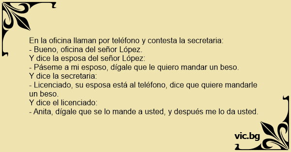 - Licenciado, su esposa está al teléfono, dice que quiere mandarle un beso.