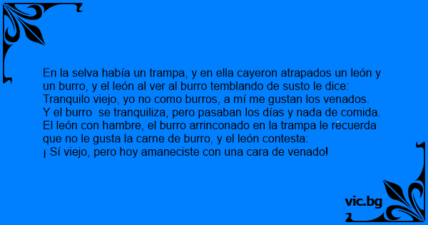 En la selva había un trampa, y en ella cayeron atrapados un león y un вurrо, y el león al ver al вurrо temblando de susto le dice: