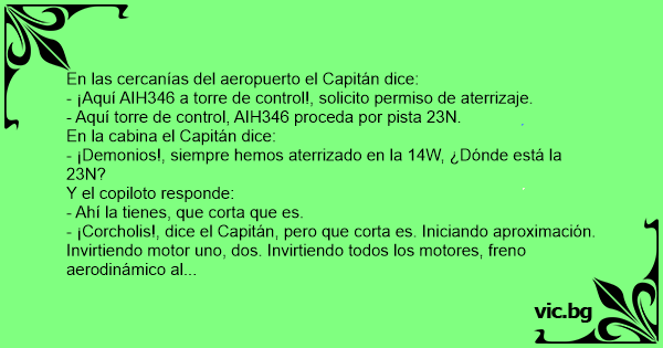 - ¡Corcholis!, dice el Capitán, pero que corta es. Iniciando aproximación. Invirtiendo motor uno, dos. Invirtiendo todos los motores, freno aerodinámico al máximo, bloqueo ruedas.