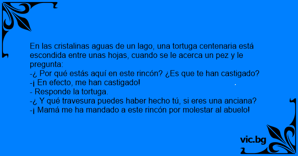 En las cristalinas aguas de un lago, una tortuga centenaria está escondida entre unas hojas, cuando se le acerca un pez y le pregunta: