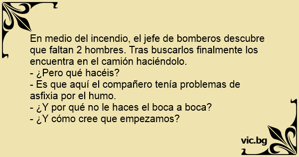 En medio del incendio, el jefe de bomberos descubre que faltan 2 hombres. Tras buscarlos finalmente los encuentra en el camión haciéndolo.