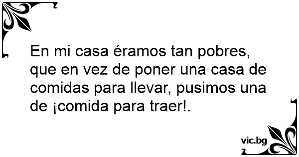 En mi casa éramos tan pobres, que en vez de poner una casa de comidas para llevar, pusimos una de ¡comida para traer!.