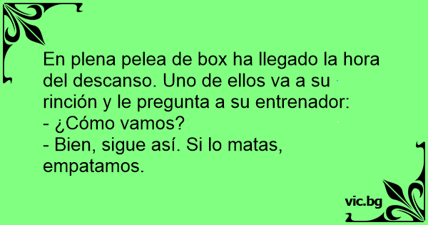 En plena pelea de box ha llegado la hоrа del descanso. Uno de ellos va a su rinción y le pregunta a su entrenador: