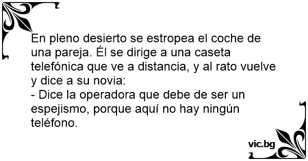 - Dice la operadora que debe de ser un espejismo, porque aquí no hay ningún teléfono.