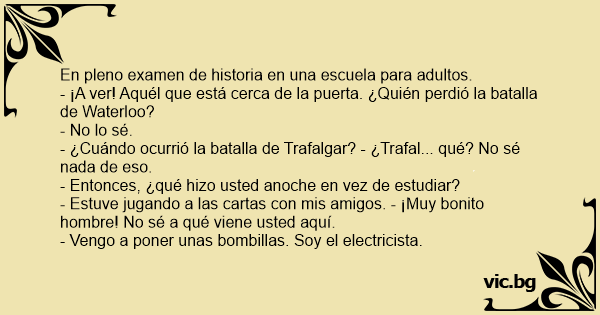 - ¿Cuándo ocurrió la batalla de Trafalgar? - ¿Trafal... qué? No sé nada de eso.