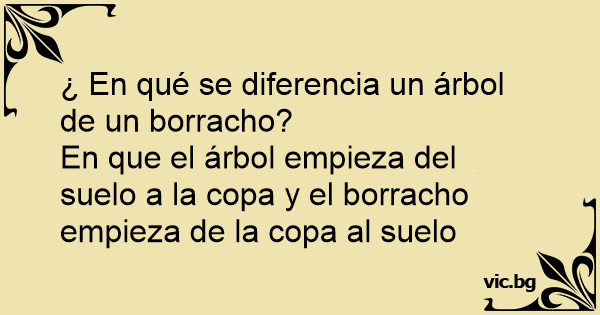 En que el árbol empieza del suelo a la copa y el borracho empieza de la copa al suelo