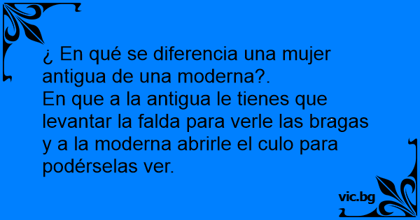 En que a la antigua le tienes que levantar la falda para verle las bragas y a la moderna abrirle el сulо para podérselas ver.