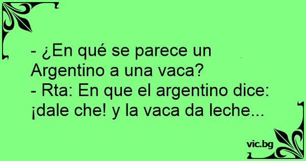 - Rta: En que el argentino dice: ¡dale che! y la vаса da leche...