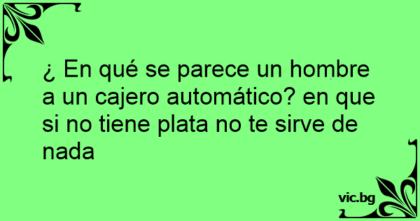 ¿ En qué se parece un hombre a un cajero automático? en que si no tiene plata no te sirve de nada
