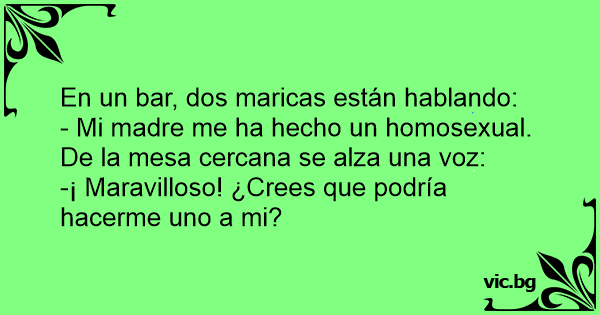 - Mi madre me ha hecho un homosexual. De la mesa cercana se alza una voz: