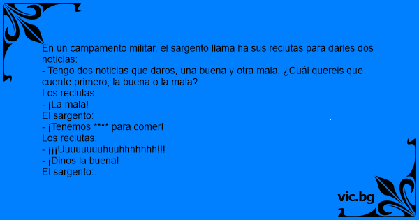 En un campamento militar, el sargento llama ha sus reclutas para darles dos noticias: