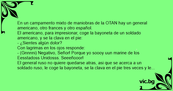 En un campamento mixto de maniobras de la OTAN hay un general americano, otro frances y otro español.