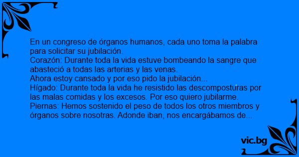 En un congreso de órganos humanos, cada uno toma la palabra para solicitar su jubilación.
