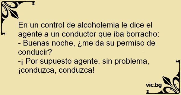 En un control de alcoholemia le dice el agente a un conductor que iba borracho: