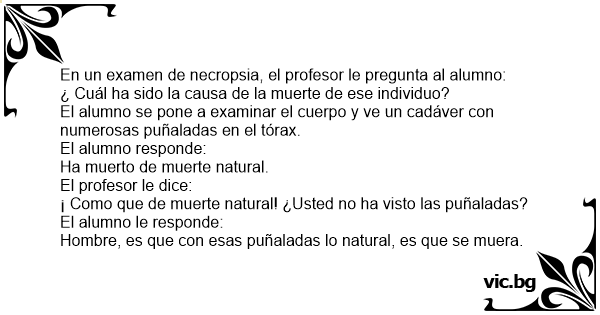En un examen de necropsia, el profesor le pregunta al alumno: