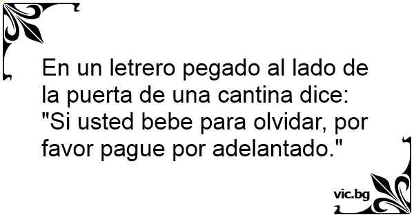 Letrero en un bar: "Si bebe usted para olvidar, por favor pague por adelantado".