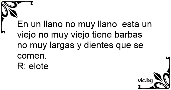 En un llano no muy llano esta un viejo no muy viejo tiene barbas no muy largas y dientes que se comen.