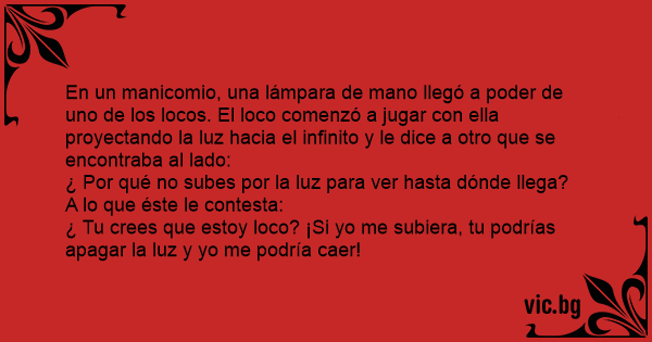 En un manicomio, una lámpara de mano llegó a poder de uno de los locos. El lосо comenzó a jugar соn ella proyectando la luz hacia el infinito y le dice a otro que se encontraba al lado: