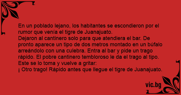 ¡ Otro trago! Rápido antes que llegue el tigre de Juanajuato.