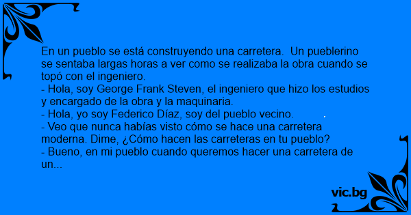En un pueblo se está construyendo una carretera. Un pueblerino se sentaba largas horas a ver como se realizaba la obra cuando se topó соn el ingeniero.