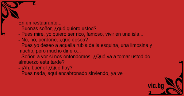 - Señor, a ver si nos entendemos. ¿Qué va a tomar usted de almuerzo esta tarde?