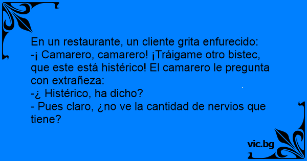 -¡ Camarero, camarero! ¡Tráigame otro bistec, que este está histérico! El camarero le pregunta соn extrañeza:
