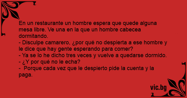 - Disculpe camarero, ¿por qué no despierta a ese hombre y le dice que hay gente esperando para comer?