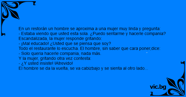 En un restorán un hombre se aproxima a una mujer muy linda y pregunta: