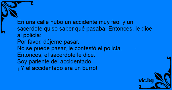 En una calle hubo un accidente muy feo, y un sacerdote quiso saber qué pasaba. Entonces, le dice al policía:
