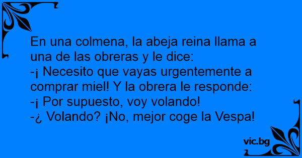 -¡ Necesito que vayas urgentemente a comprar miel! Y la obrera le responde: