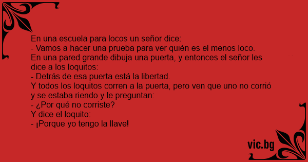 Y todos los loquitos corren a la puerta, pero ven que uno no corrió y se estaba riendo y le preguntan: